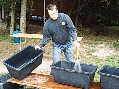 Die Abwaschwannen hat mein Papa aufgebaut, weil ja jeder sein Geschirr im Zeltlager selber abwaschen muss.